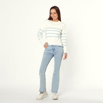Un clásico con un toque náutico y chic. La Chompa Olga con estampado de rayas...
