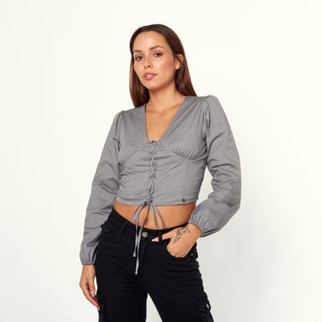 Un toque moderno y original para tu look. La Blusa Nudo en popelina lycrada gris...