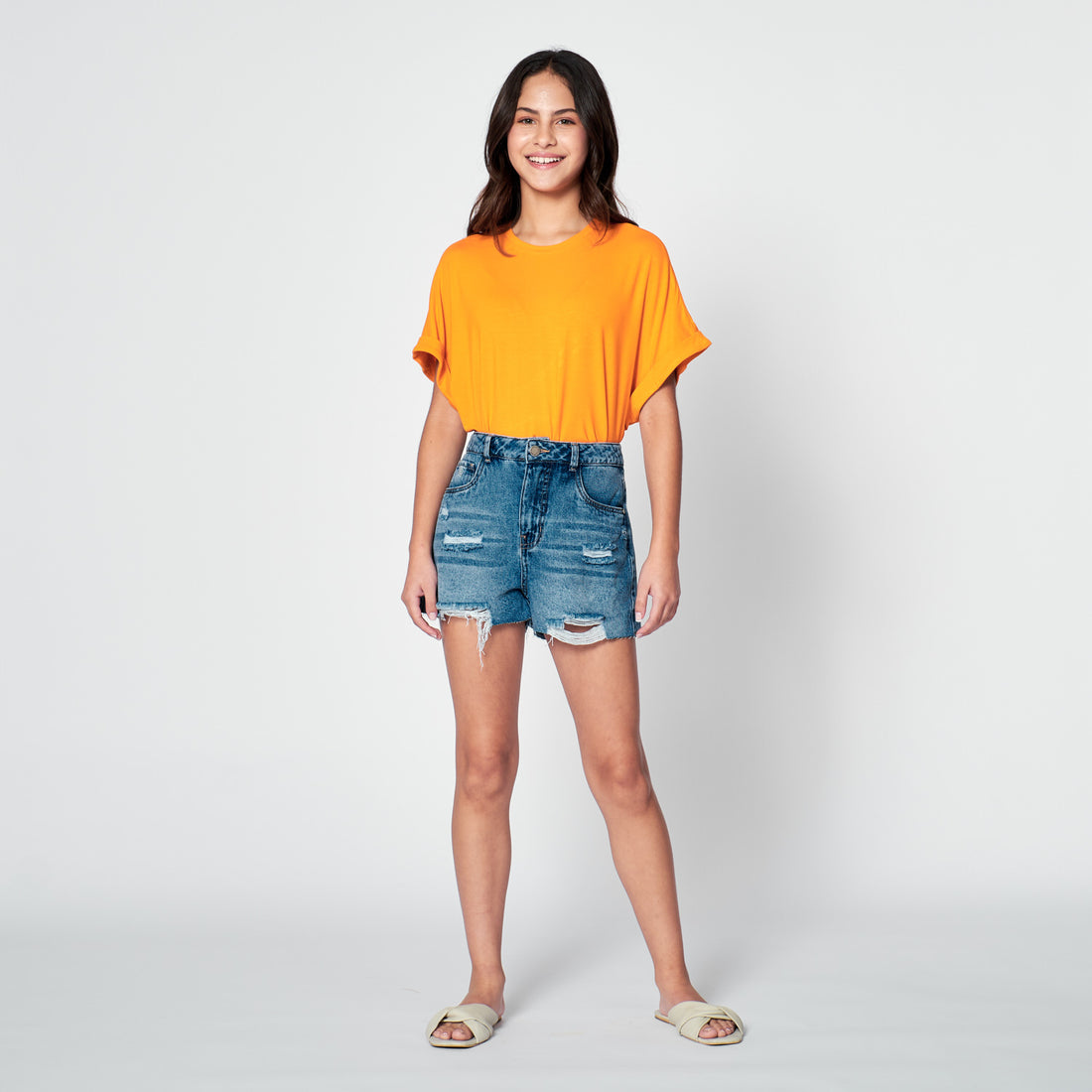 Shorts con efecto desflecado, perfectos para un look fresco y desenfadado en días cálidos. Tiro:...