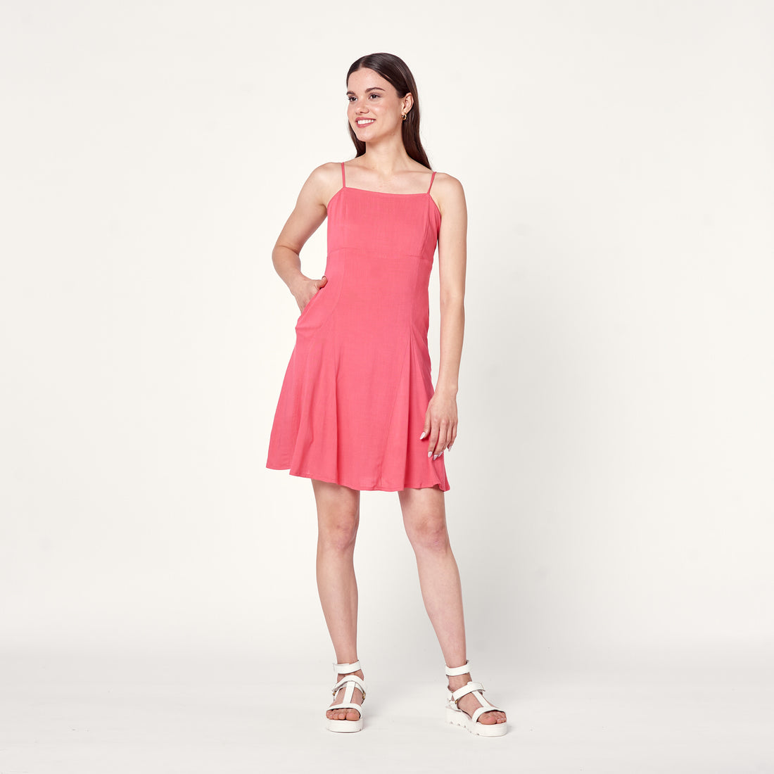 Sofisticación sin esfuerzo. Vestido en rayón de caída fluida, fit relajado. El color hueso aporta...