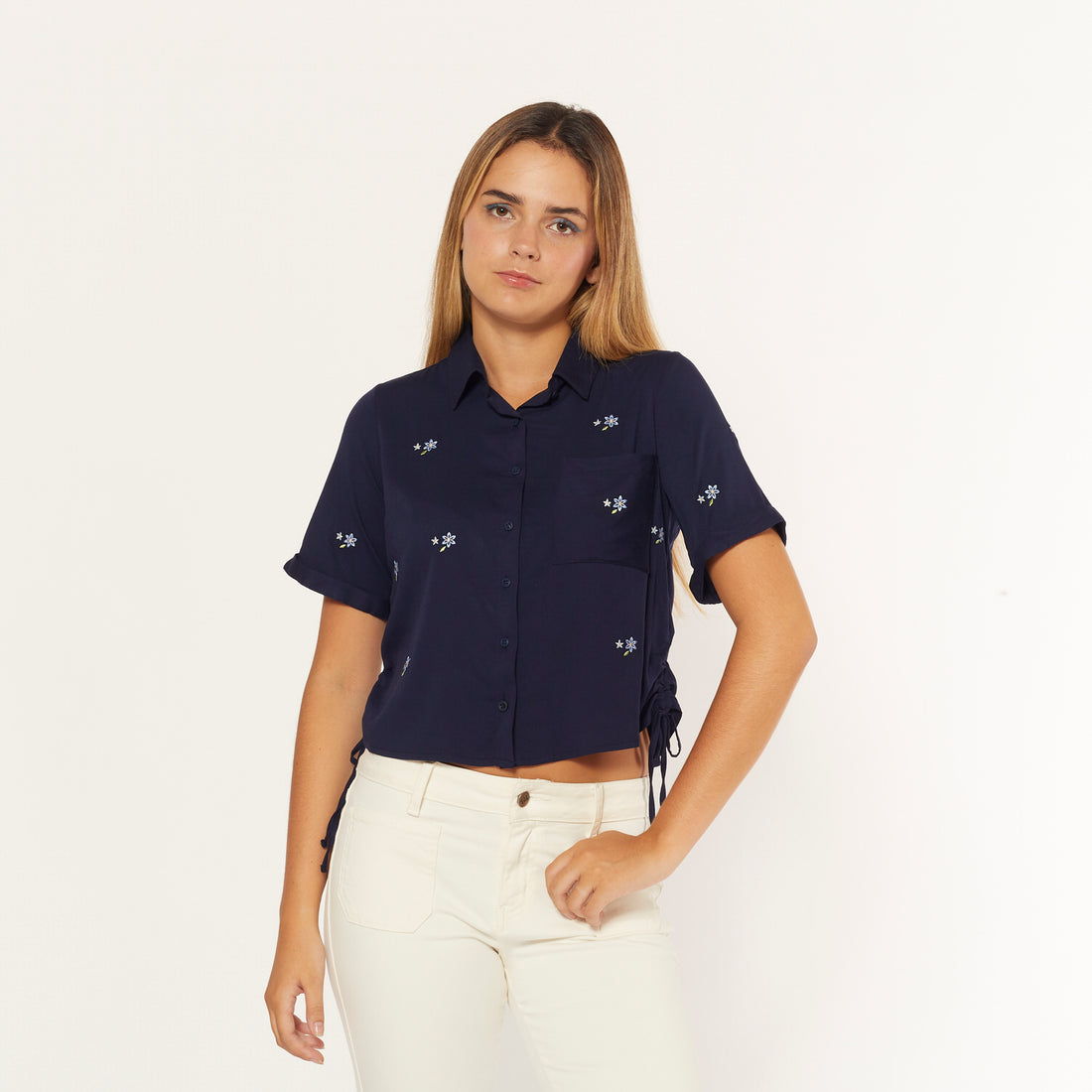 Blusa manga corta, de estilo camisera, calidad chalis. Composición: 98% RAYÓN 2% SPANDEXCuidado de la...