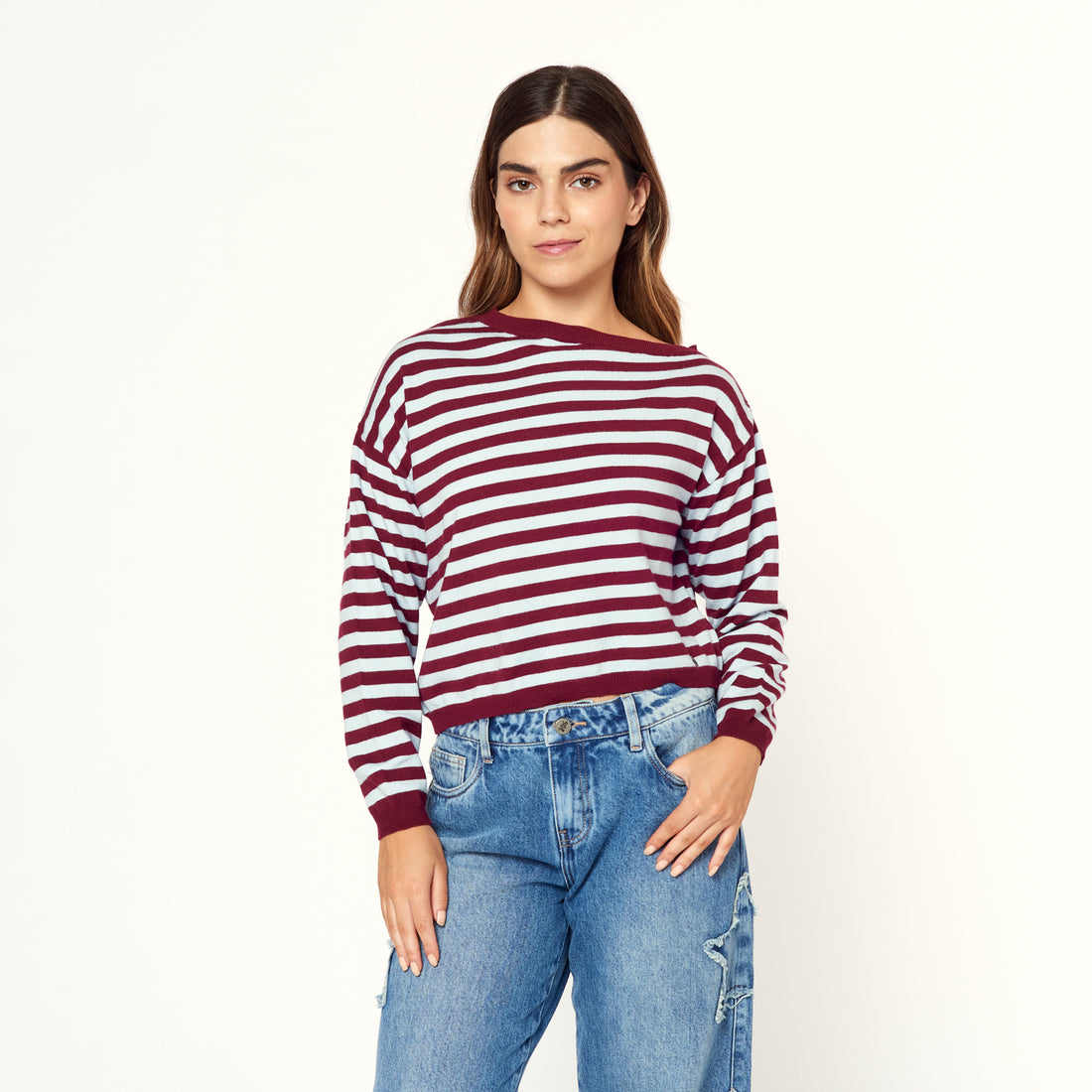 Polo tejido offshoulder. Composición: 47% VISCOSA, 23% NYLON, 30% POLYESTER. Cuidado de la prenda: *LAVAR...