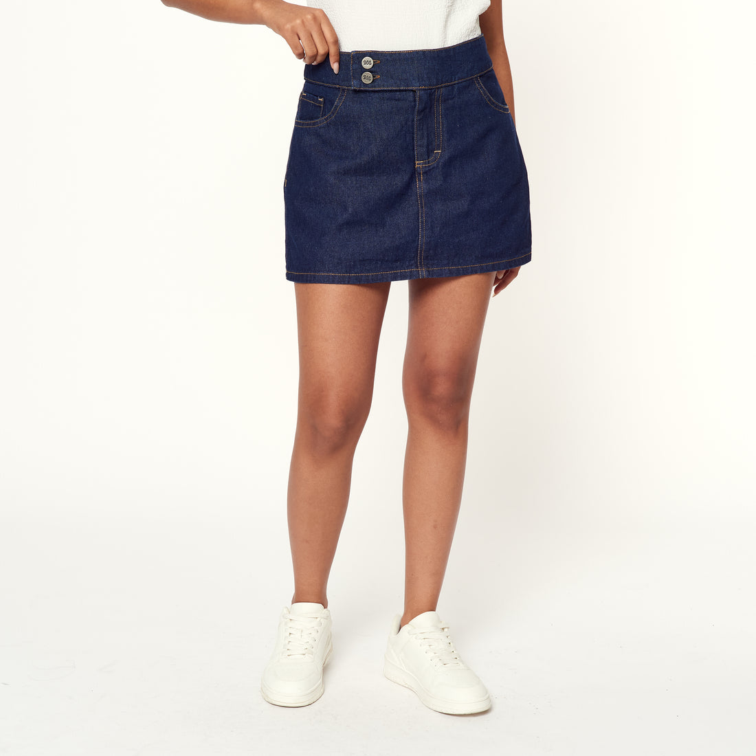Falda corta de denim liviano. Composición: 100% Algodón. Cuidado de la prenda: *LAVAR POR SEPARADO *LAVAR...