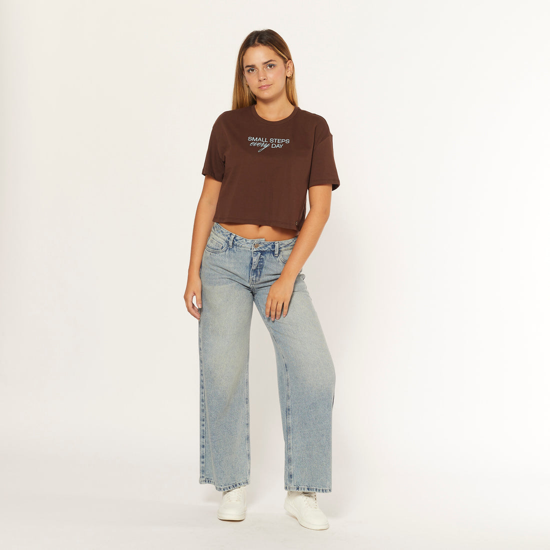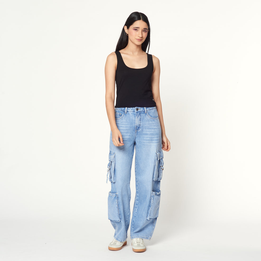 Jean básico de denim rígido con bolsillos. Tiro: Alto. Fit: Wide Leg. Composición: 100% Algodón. Cuidado...