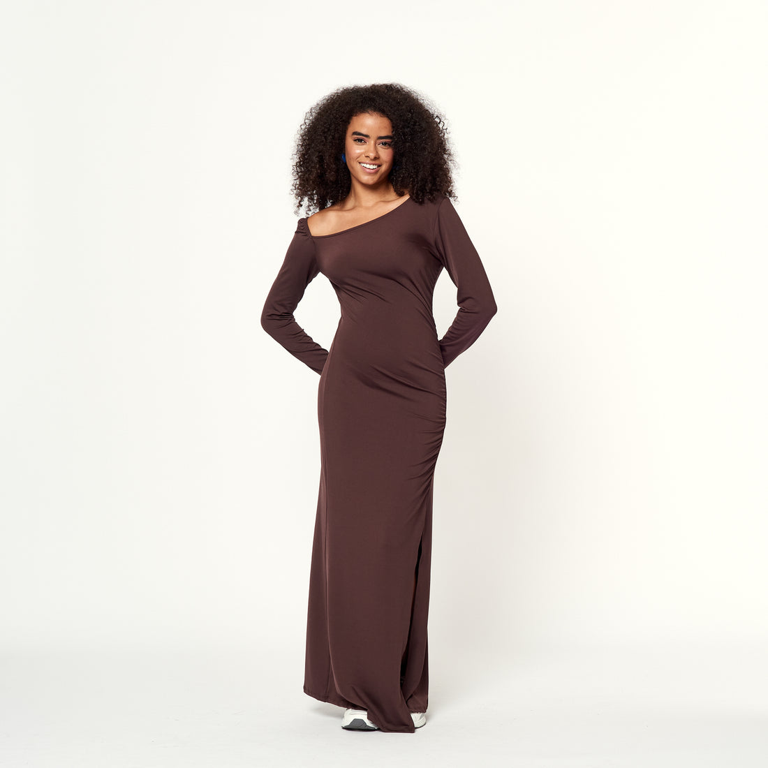 Vestido largo, de tela suplex. Composición: 95% RAYÓN, 5% SPANDEX. Cuidado de la prenda: *LAVAR...