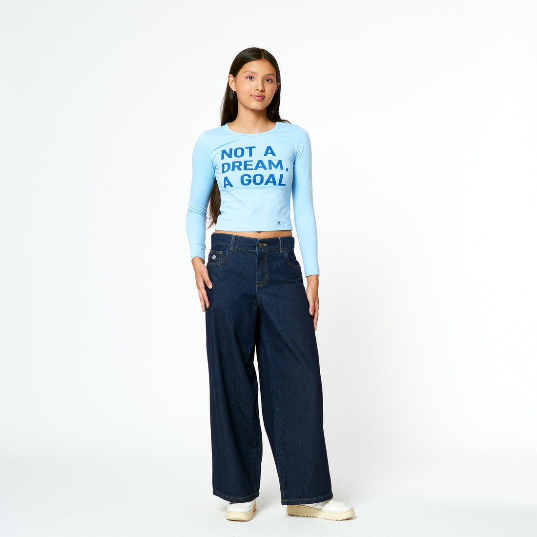 Jean denim rígido, de tiro medio. Tiro: Medio. Fit: Wide Leg. Composición: 100% ALGODÓN. Cuidado de...