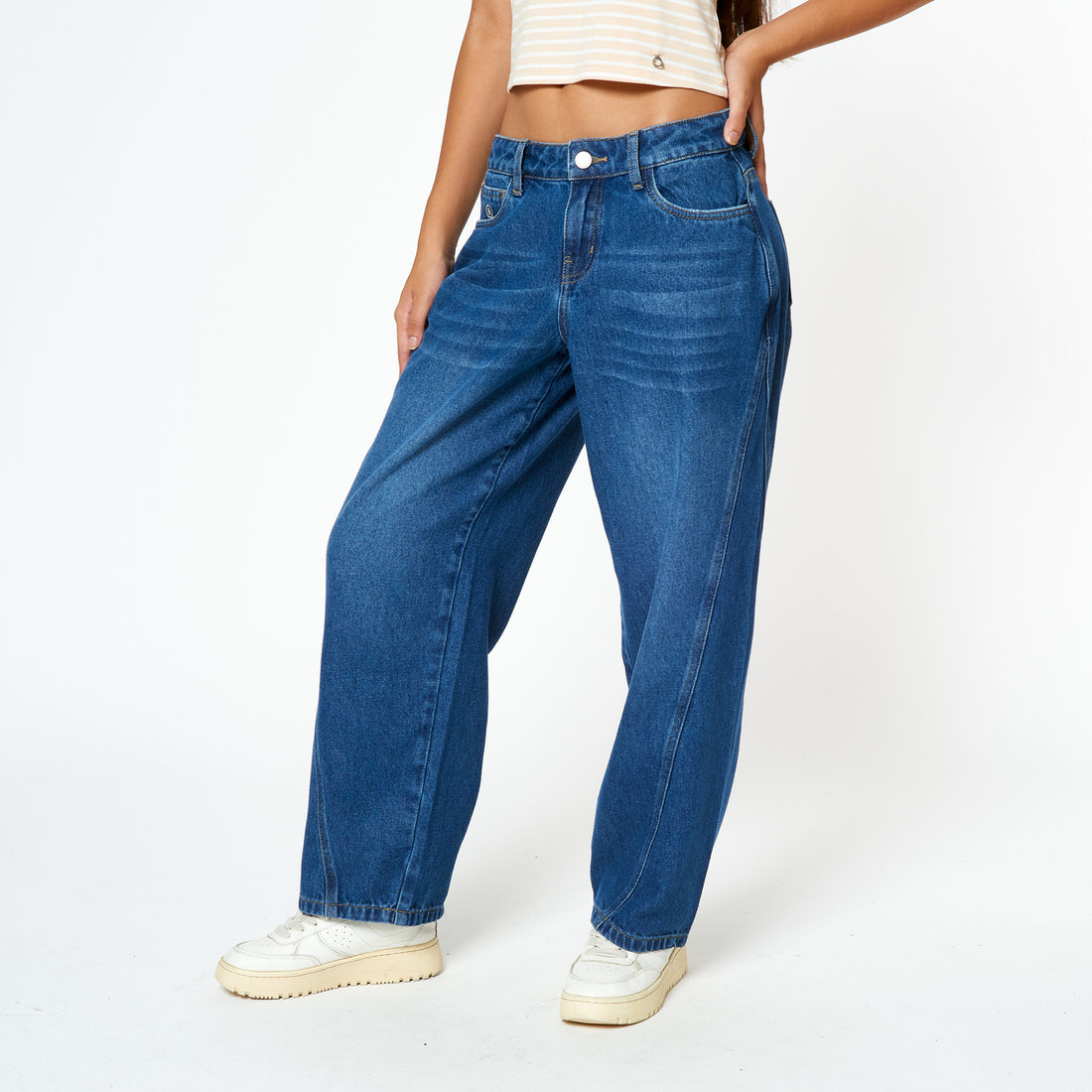 Jean denim rígido, de fit baggy. Tiro: Medio. Fit: Baggy. Composición: 100% ALGODÓN. Cuidado de la...