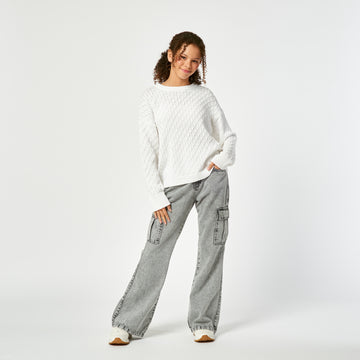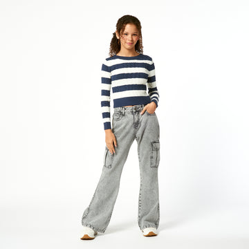 El Jean Nua en denim rígido color plomo es ideal para las pequeñas fashionistas. Su...