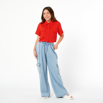 ¡Rojo que enciende! La Blusa Look en lino rojo tiene un corte recto y un...