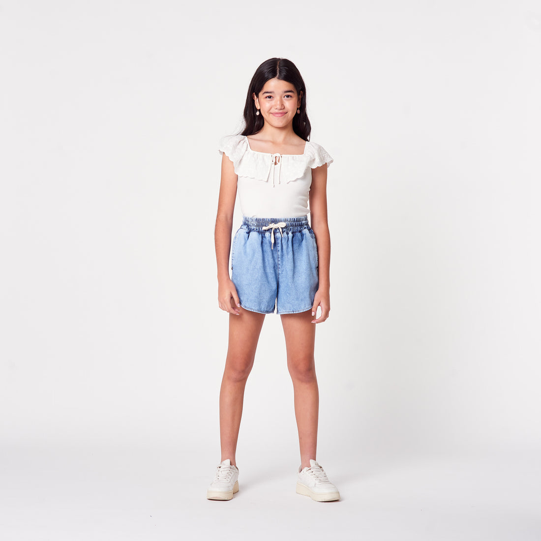 Un clásico divertido para los días de juego 💙. El short Liz en denim rígido...