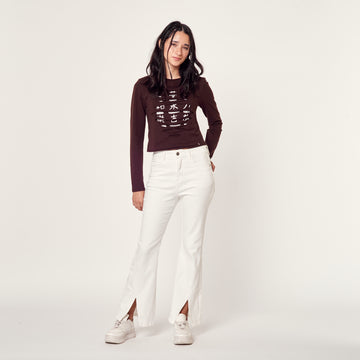 Look atrevido en contraste. Zumba color hueso en drill rígido con un corte amplio que...