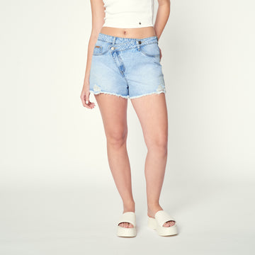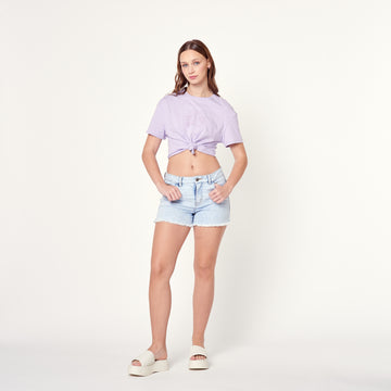 I ❤ DENIM! Short a la cintura con bolsillos delanteros, posteriores y detalle de tiras...