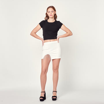 Mini falda negra con flecos plateados, elegancia para brillar en la pista de baile Tiro:...