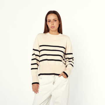 Un clásico con un toque náutico y chic. La Chompa Olga con estampado de rayas...