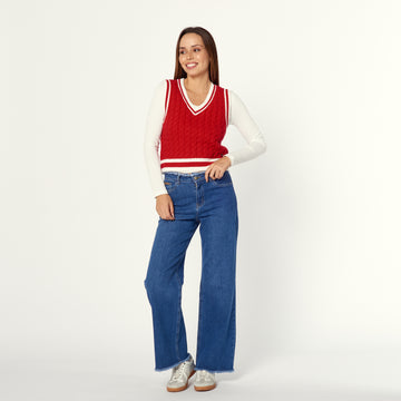 Un chaleco de tejido de punto en color rojo con detalles en hueso. El Chaleco...
