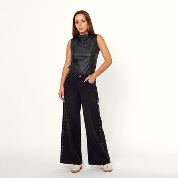 Un básico elegante y versátil para tu armario. El Jean Tachina en denim rígido negro...