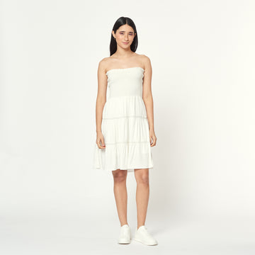 Sofisticación sin esfuerzo. Vestido en rayón de caída fluida, fit relajado. El color hueso aporta...