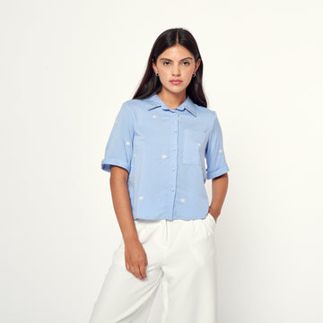 Esta blusa de chalís en tono celeste es una opción original y estilosa. Su diseño...