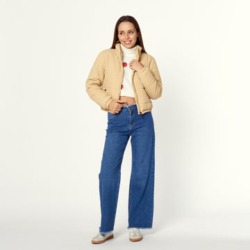 Una casaca puffer de nylon en colores beige. La Casaca New Donna ofrece abrigo ligero...