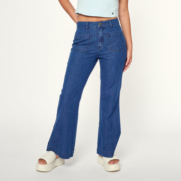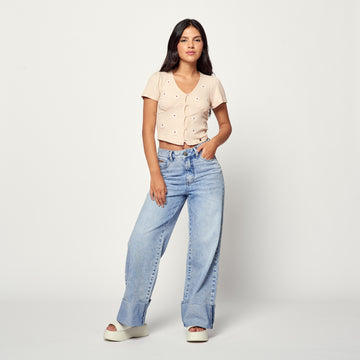 Clásico y atemporal. Este jean de denim rígido en un tono celeste es perfecto para...