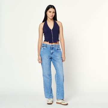 Frescura y movimiento ✨. El jean Point en denim confort celeste tiene un calce juvenil...