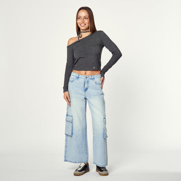 Un clásico renovado con onda retro. El Jean Via en denim rígido celeste presenta un...