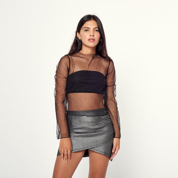 Sofisticación y misterio. Esta blusa de tul negro es perfecta para crear un look sensual...