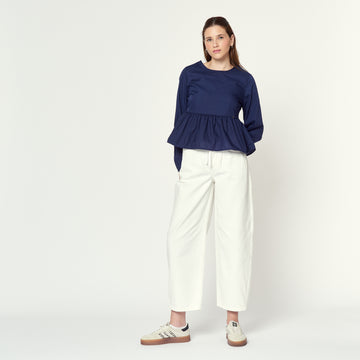Look atrevido en contraste. Zumba color hueso en drill rígido con un corte amplio que...