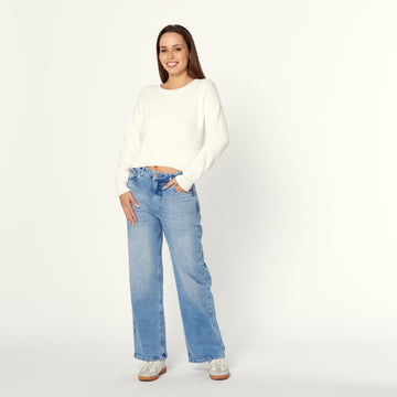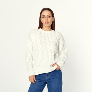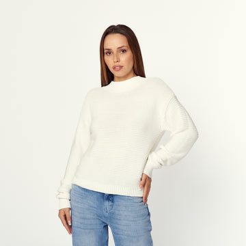 Una chompa de tejido de punto fino en colores hueso. La Chompa Karen ofrece un...