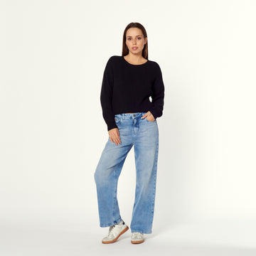 Una chompa de tejido de punto fino en color negro. La Chompa Ana ofrece un...