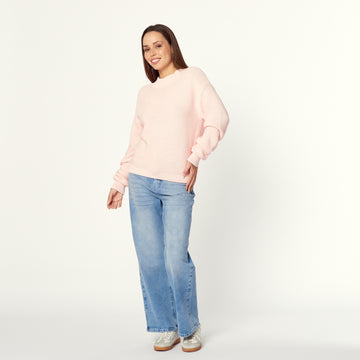 Una chompa de tejido de punto fino en color palo rosa. La Chompa Karen ofrece...