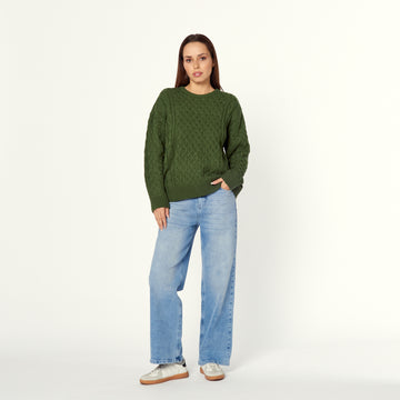 Una chompa de tejido de punto grueso en colores verde. La Chompa Mariseli ofrece un...