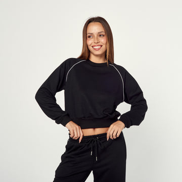 Un básico con carácter. La polera negra de french terry combina con todo y te...