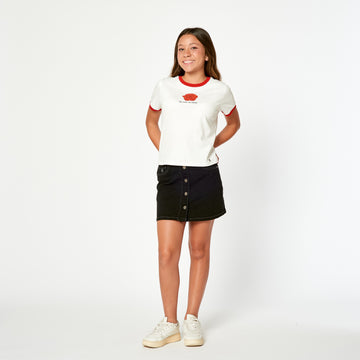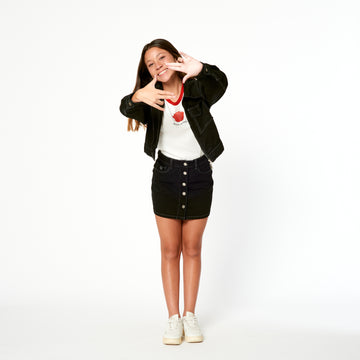 Esta falda negra de drill denim es una prenda básica y versátil que no puede...