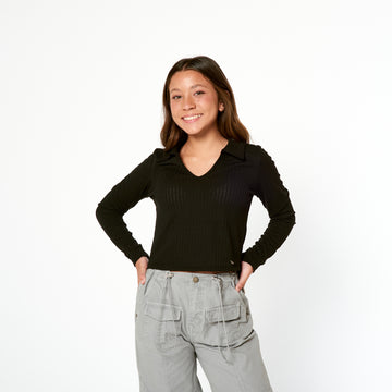 Un básico imprescindible para tu armario. Esta polera negra de french terry es perfecta para...