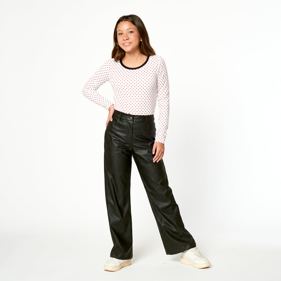 Sofisticación y estilo en una sola prenda. Este pantalón negro de cuerina es perfecto para...