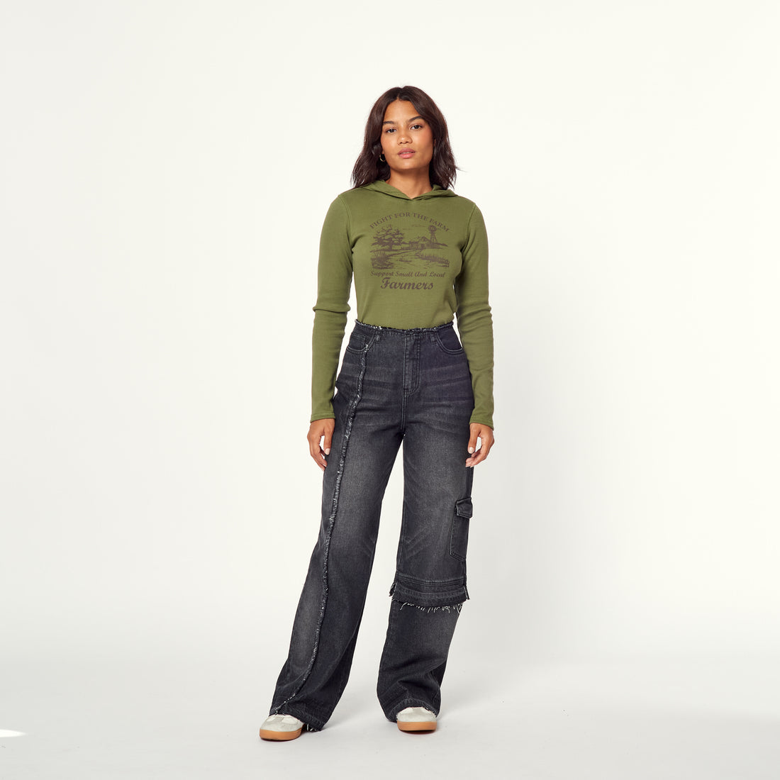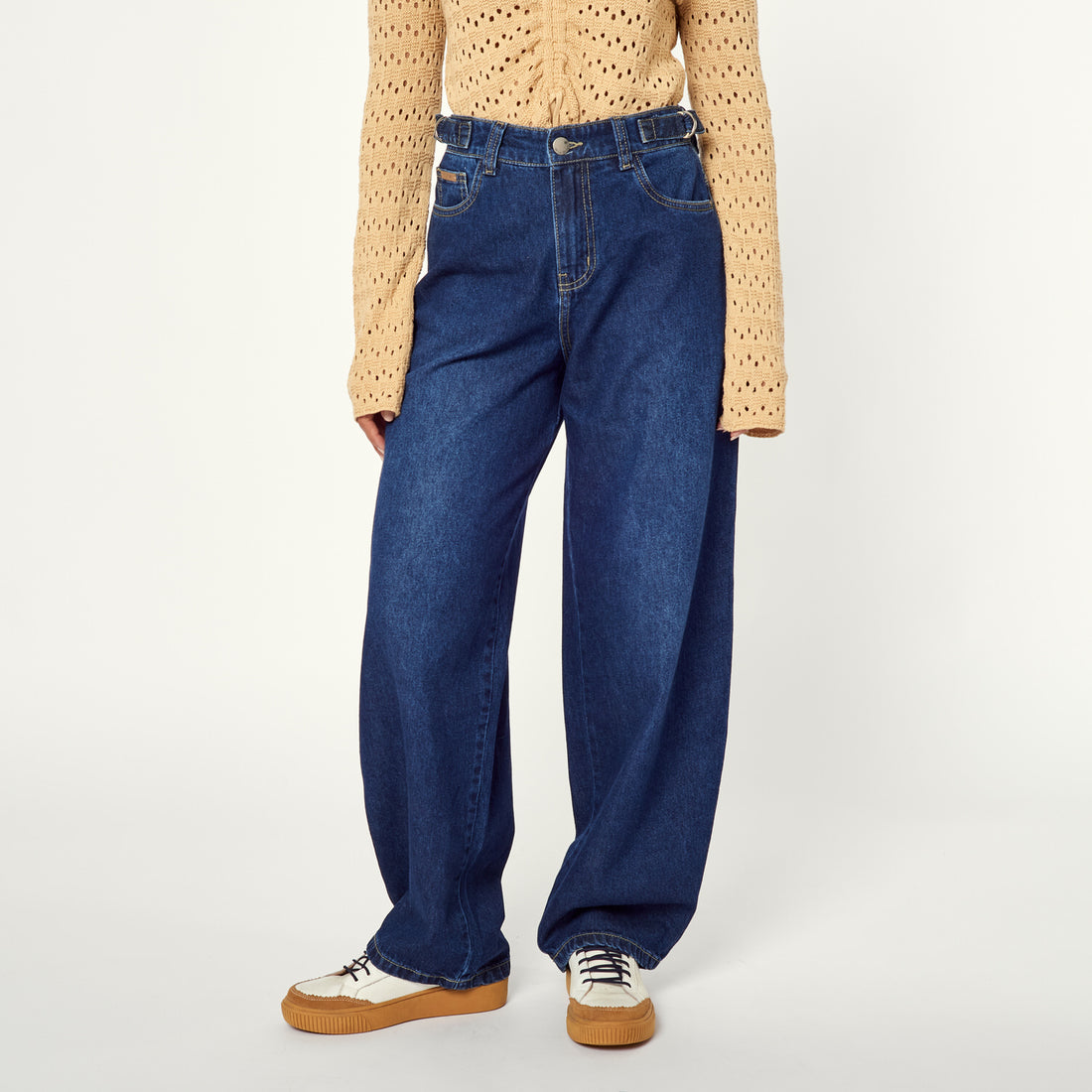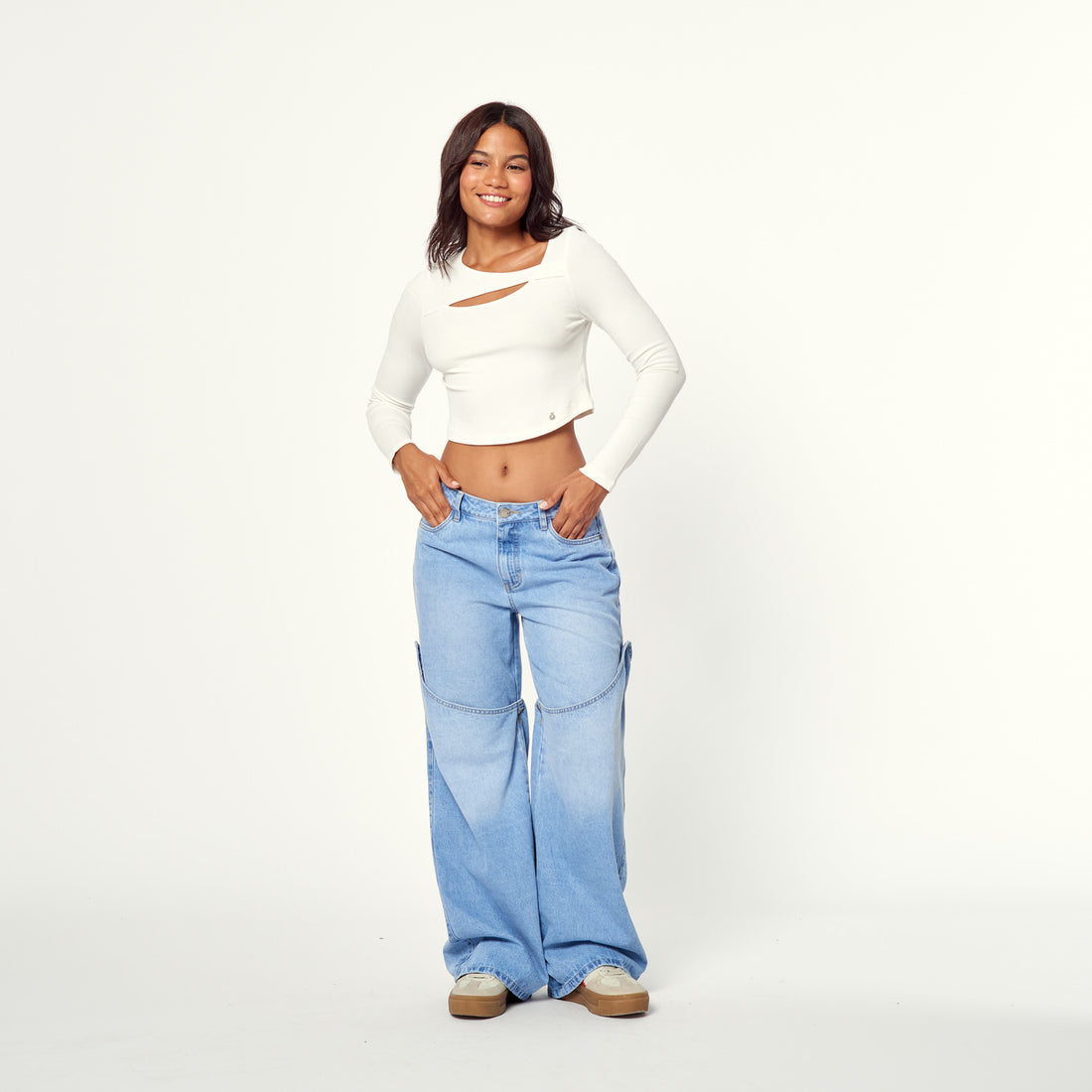 ¡Estilo cargo reinventado! El Jean Ama en denim rígido celeste tiene un diseño de corte...