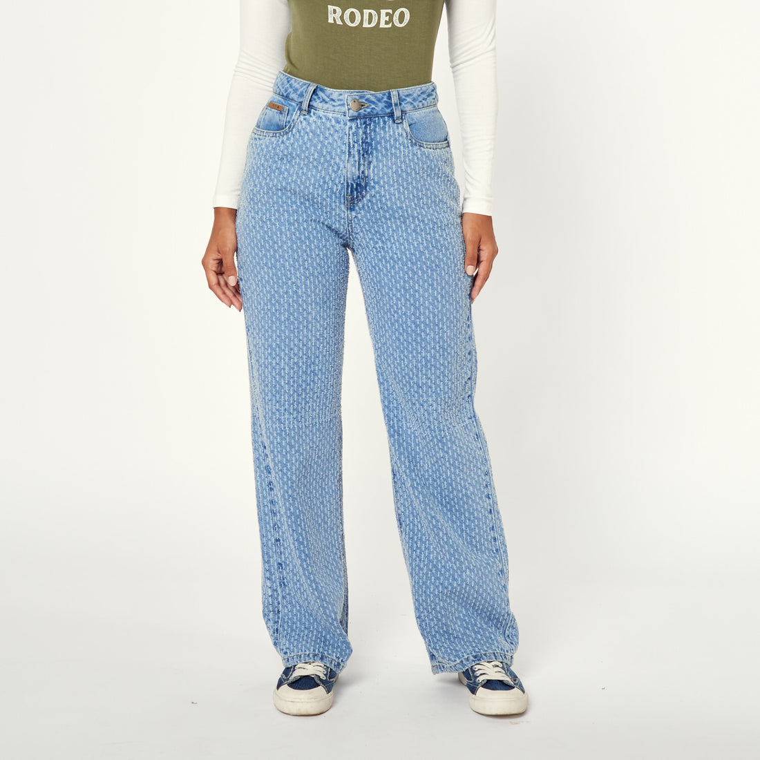 ¡Denim con actitud! El Jean Hanna en denim rígido celeste tiene un diseño de corte...