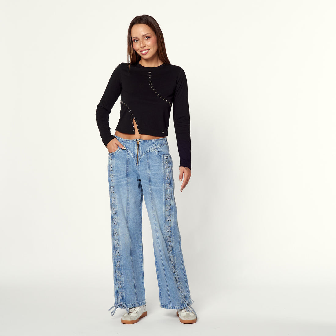 Un toque moderno y desenfadado para tu look. El Jean Laze Up en denim rígido...