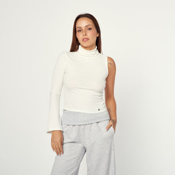 Corte diferente, estilo asegurado. Este polo hueso con forma asimétrica rompe esquemas y roba miradas....