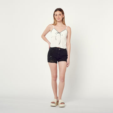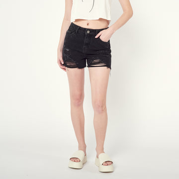 ¡Actitud rockera! El Short Rodeo, en denim rígido negro, es perfecto para un look con...
