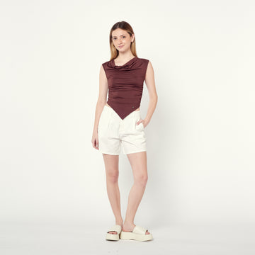 Top en tela de venezia con un diseño drapeado sofisticado. Perfecto para un look nocturno...
