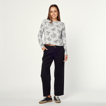 Polo manga larga negro con estampado blanco minimalista. Un fit de jersey lycrado para combinar...