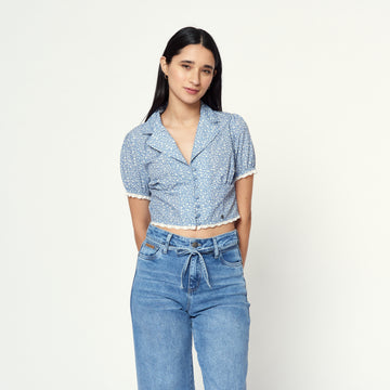 La blusa Softball en popelina con estampado color azul es ligera, fresca y llena de...