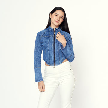 Sofisticada y fresca. Confeccionada en denim comfort azul, la blusa Ashley suma actitud a tus...