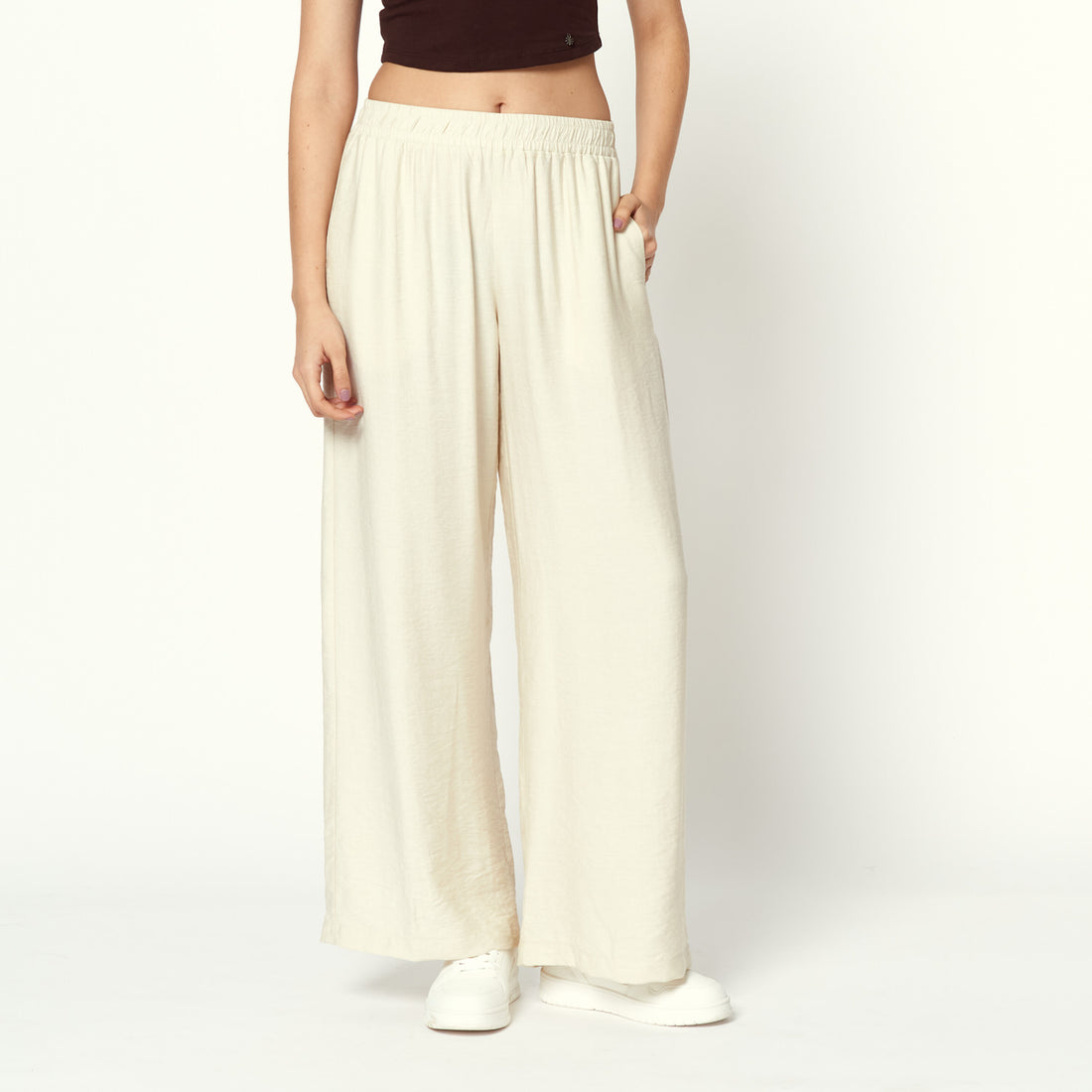 Pantalón en lino cómodo y versátil. El tono crema funciona como básico elegante. Tiro: Medio....