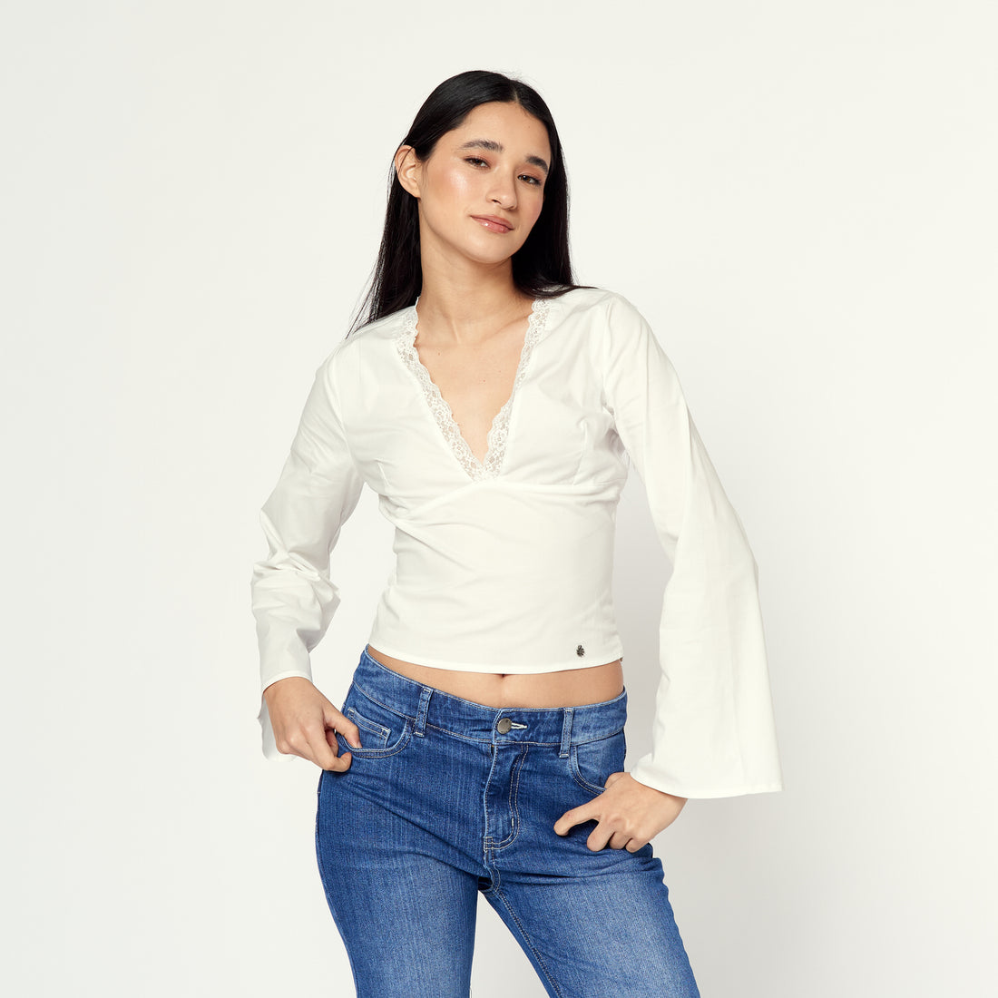 La clásica que siempre funciona. En popelina stretch hueso, Pretty es esa blusa que no...