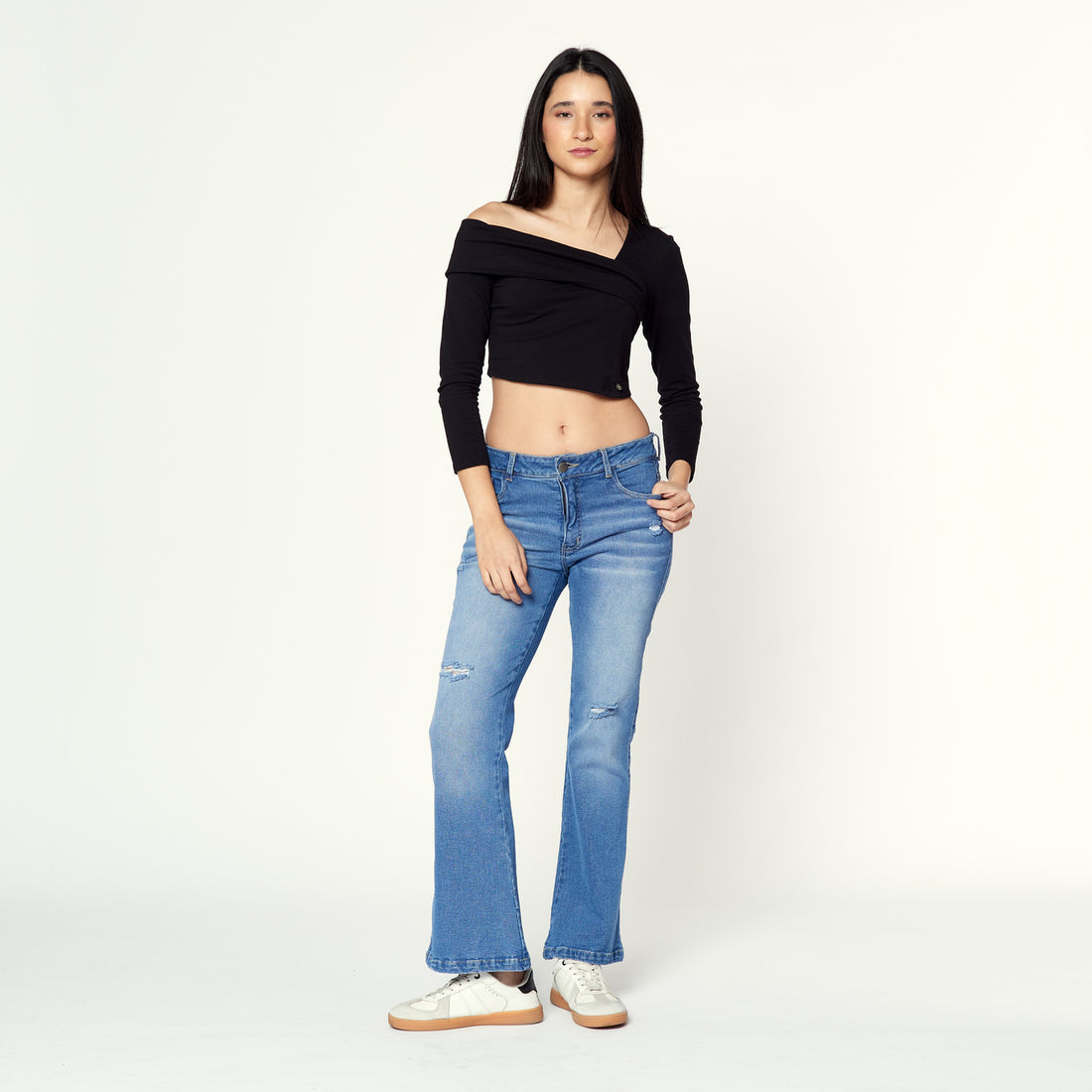 Jean en denim stretch de fit favorecedor. El color azul resalta su estilo casual. Tiro:...