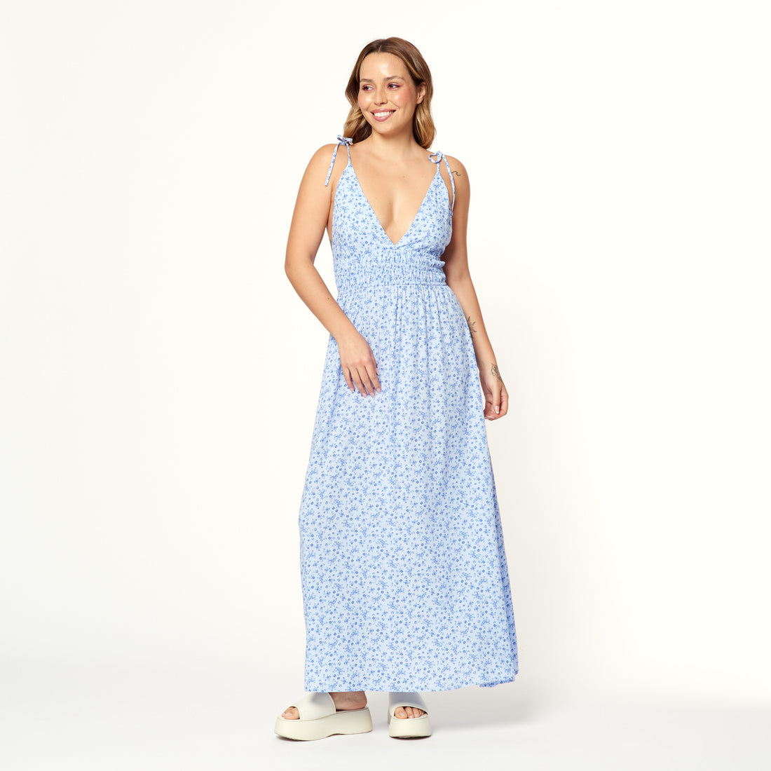 Azul clásico, en un diseño que estiliza sin esfuerzo. Dorotea tiene alma noventera, en denim...