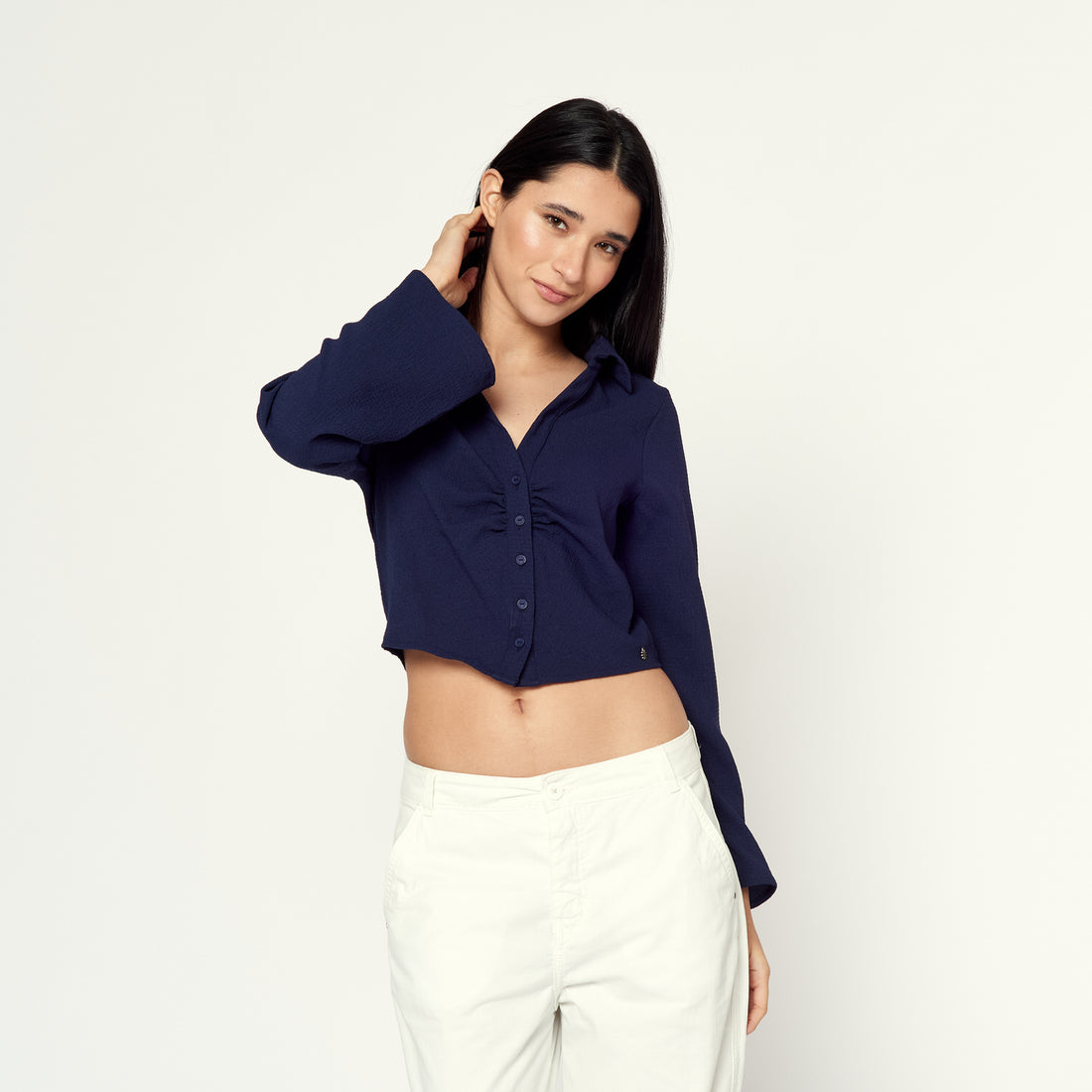 Textura que enamora. Blusa Hope en vienna waffer azul, ideal para elevar tus básicos con...
